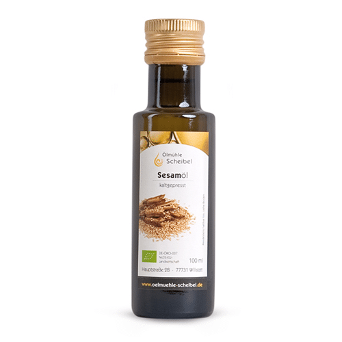 Sesamöl aus der Ölmühle Scheibel wird aus den ungerösteten Samen schonend kalt gepresst.